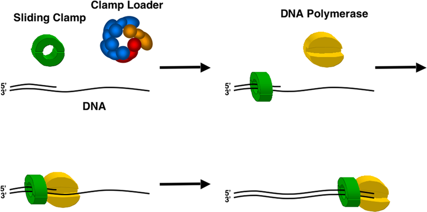 Clamp loader: sÀtter fast sliding clamp till DNA.