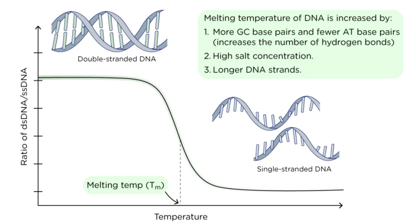 Melting temperature: temperaturen då 50% av ett DNA duplex dissocierar och blir enkelstrandat (single stranded).