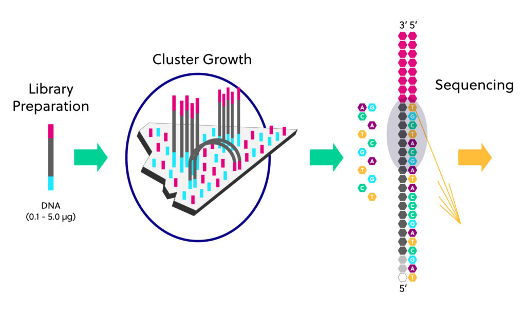 The sequencing library is diluted to very low concentrations together with NaOH (sodium hydroxide).